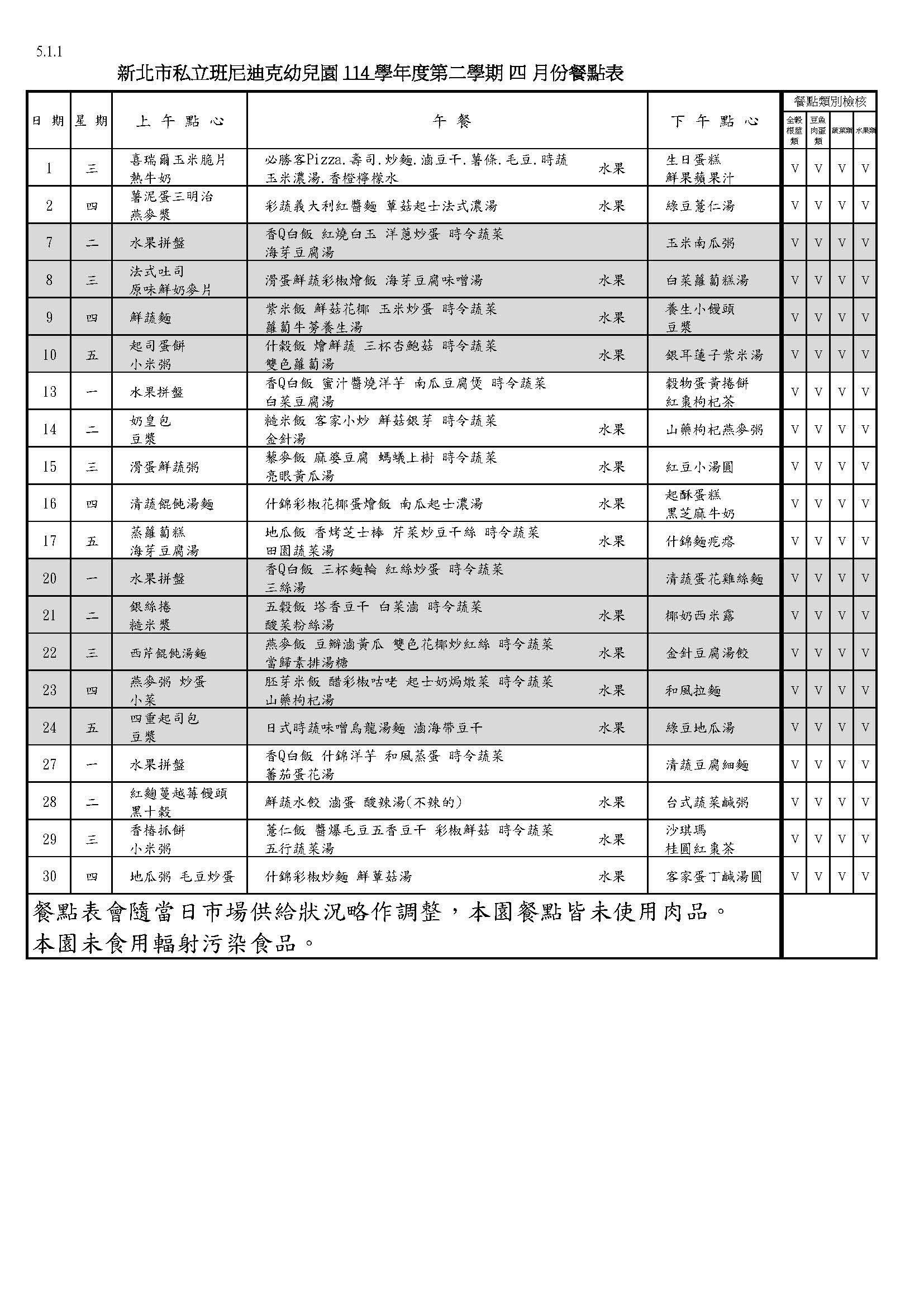 115年4月餐點表
